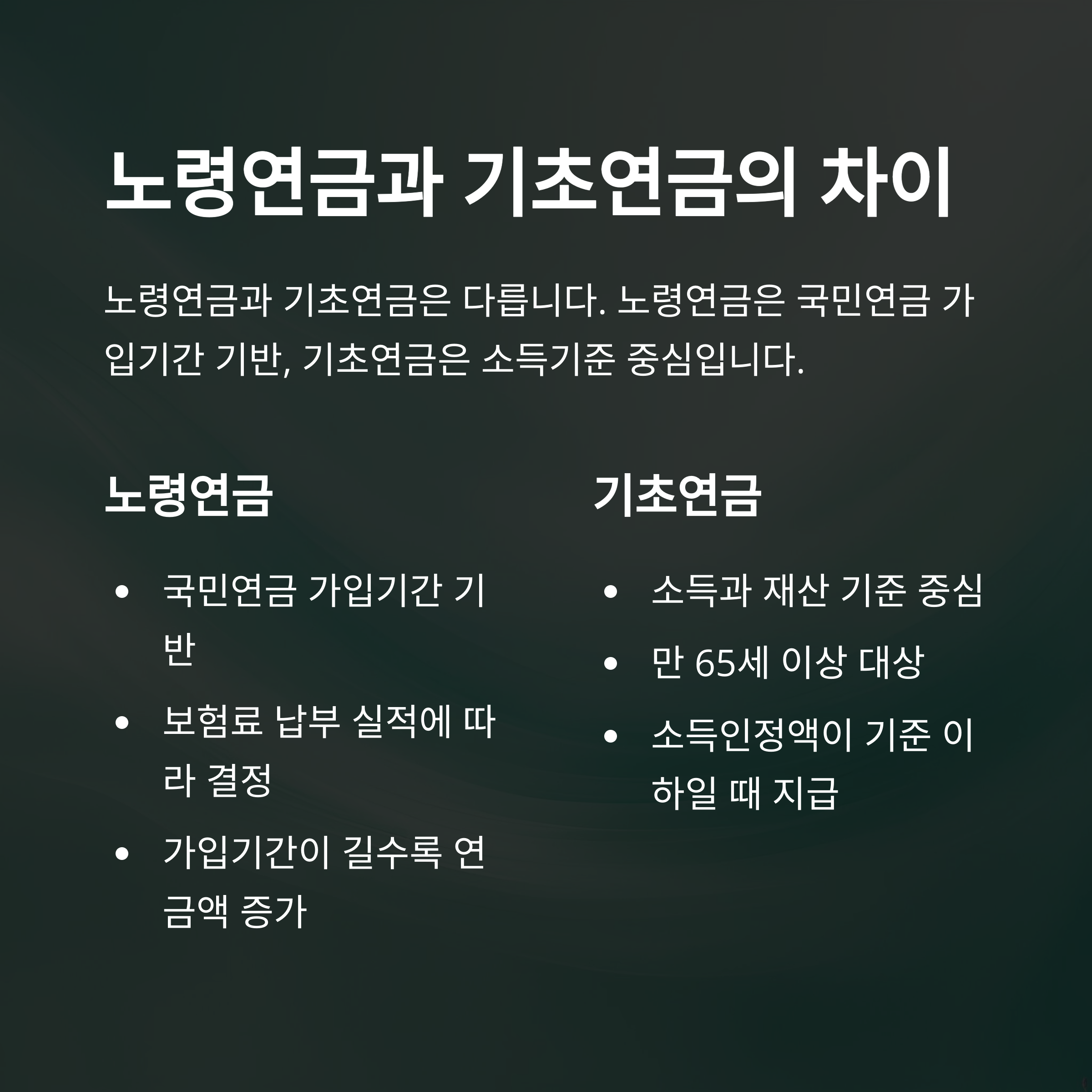 | 구분 | 기초연금 | 노령연금 |