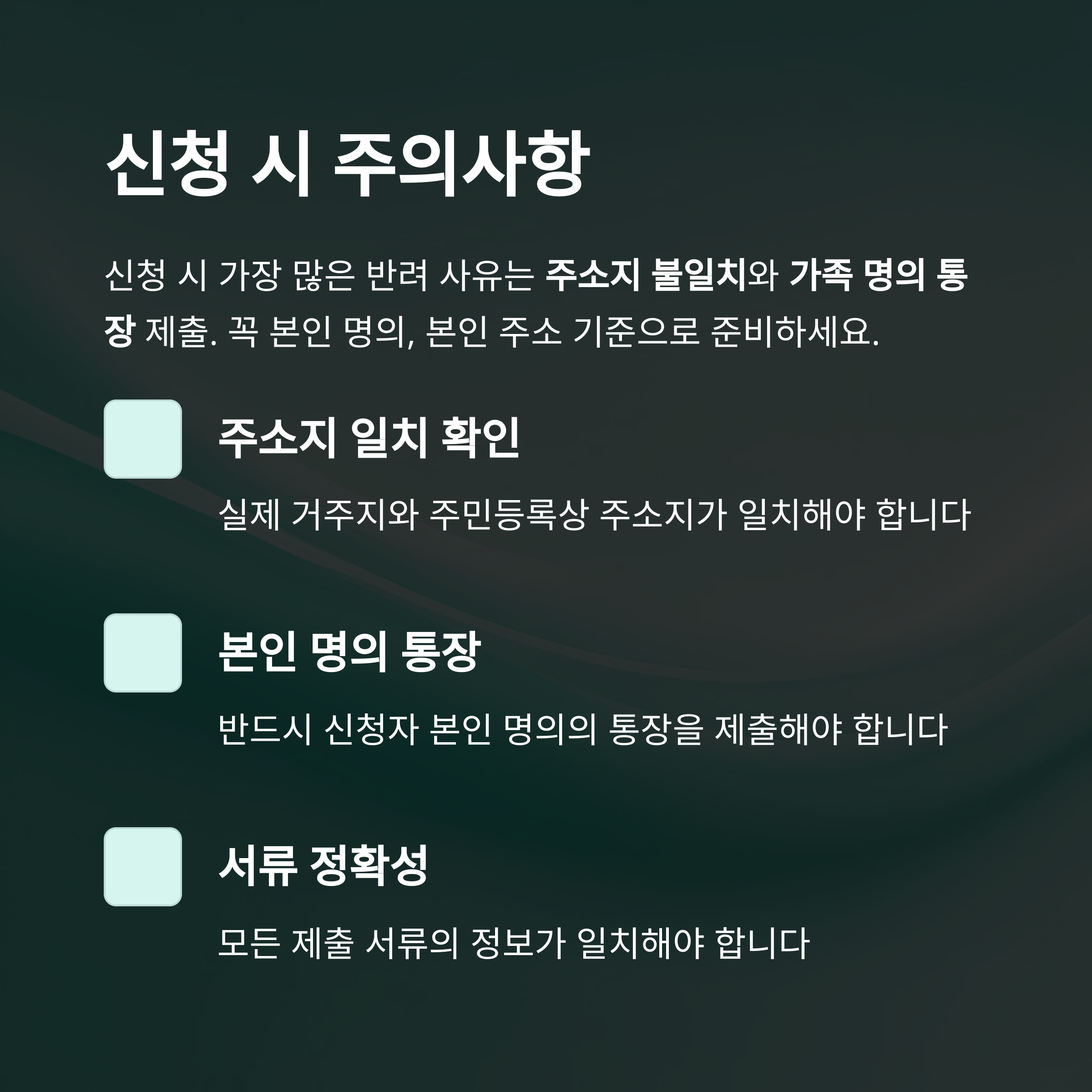 저는 어머니 신청 도와드릴 때 주소지와 실제 거주지가 다르다는 이유로 한 차례 반려된 경험이 있어요. 기초연금은 주소지 관할 주민센터에서만 접수가 가능하니, 전입신고 상태가 매우 중요합니다. 또 하나는 가족 명의 통장 제출. 절대 안 됩니다. 꼭 본인 명의여야 해요. 주민센터에서 “최근에도 통장 명의 문제로 되돌아가는 분이 많다”고 말하더라고요. 서류는 미리 복사해두는 게 좋고, 신청일 당일에 오픈 시간 맞춰 가는 걸 추천드립니다.