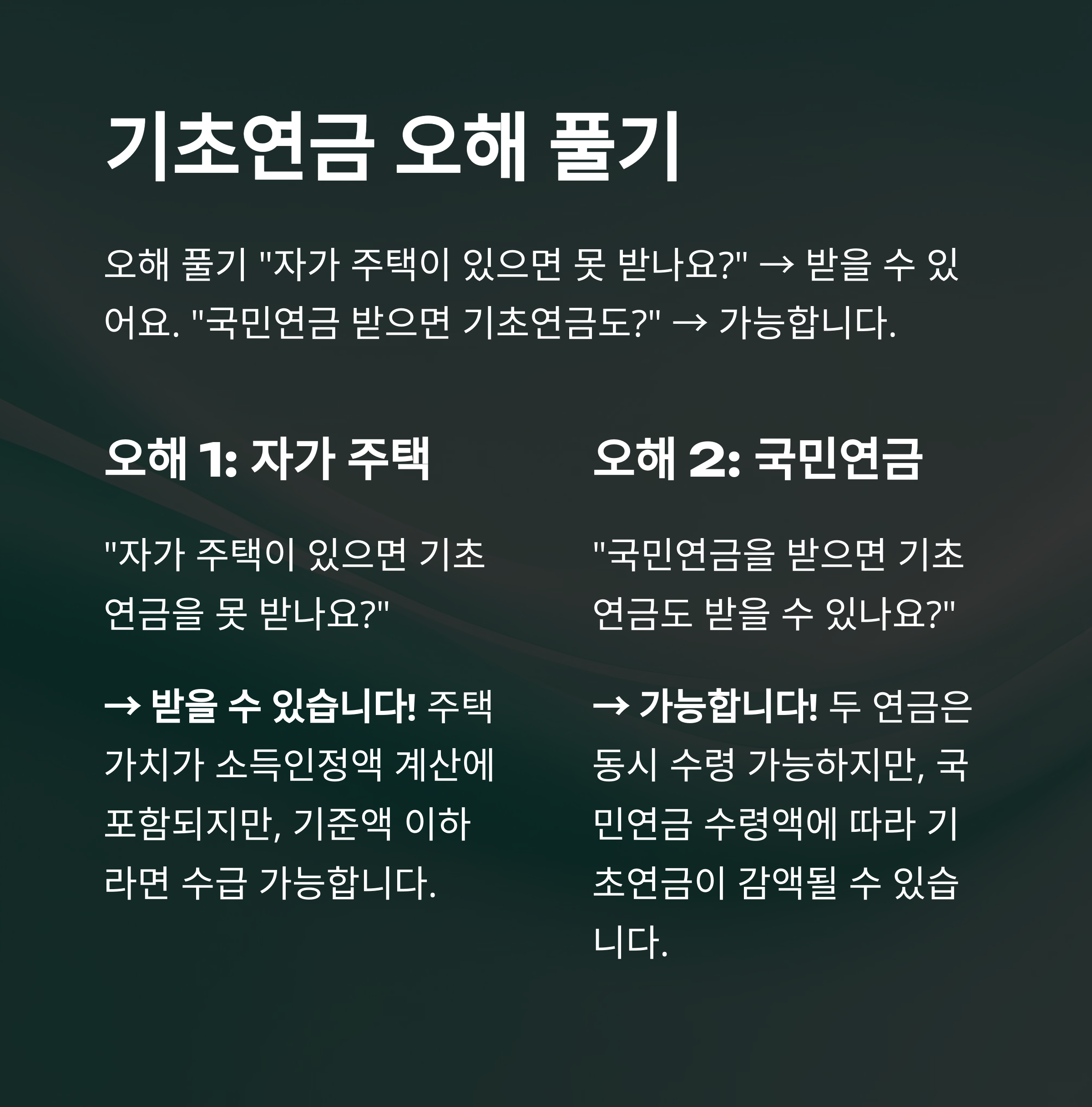 - Q. 재산은 없지만 국민연금 많이 받으면? → A. 기초연금은 감액 또는 미지급 가능성 있습니다.