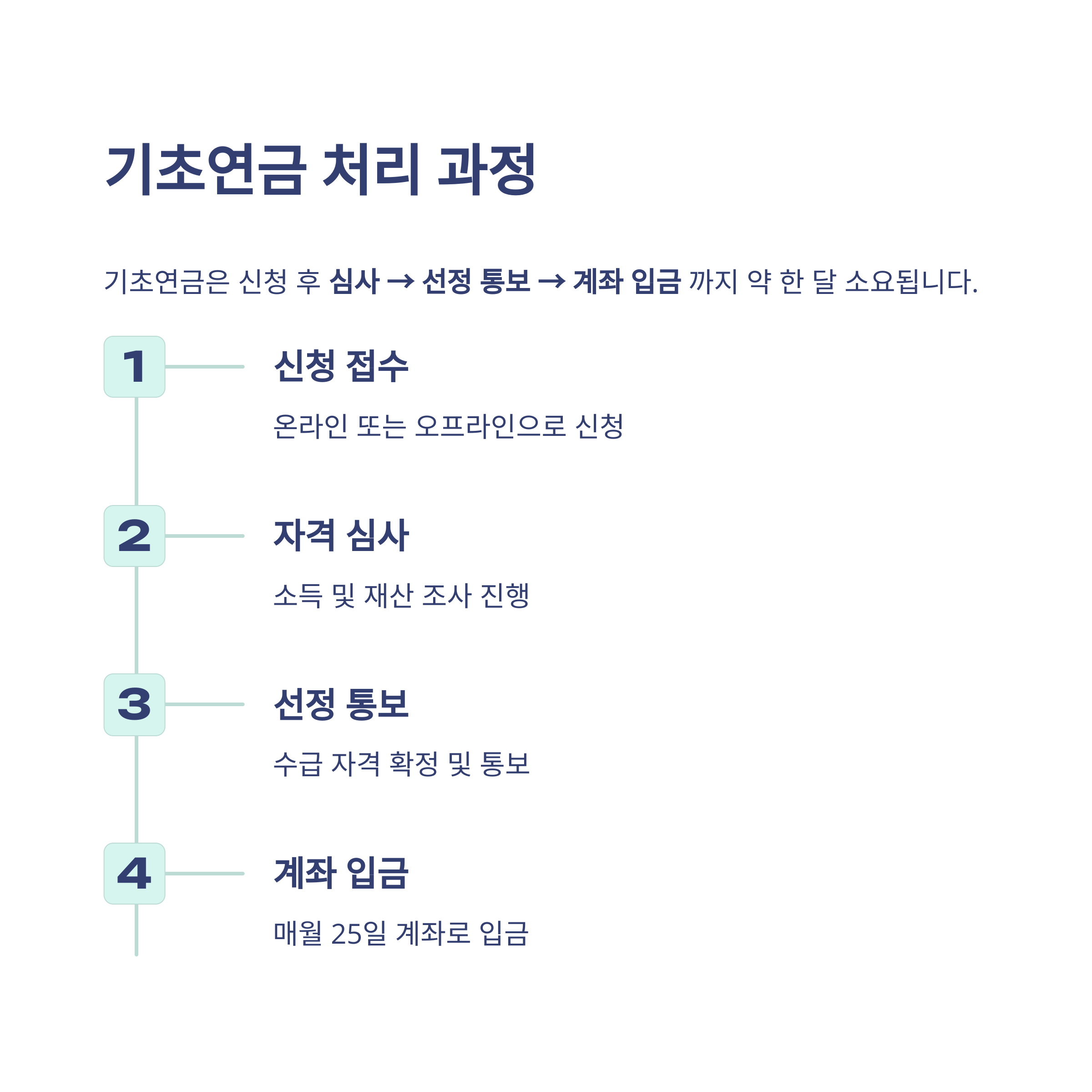 신청만 하면 바로 돈이 들어오는 줄 알았던 저는, 수급 절차도 심사 과정이 있다는 걸 뒤늦게 알았어요. 기본적으로는 신청 후 접수 → 심사 → 선정 통보 → 연금 지급까지 약 한 달 정도 소요됩니다. 심사 과정 중 추가 서류 요청이 있을 수 있으니 문자 확인을 잘 해두셔야 하고요.